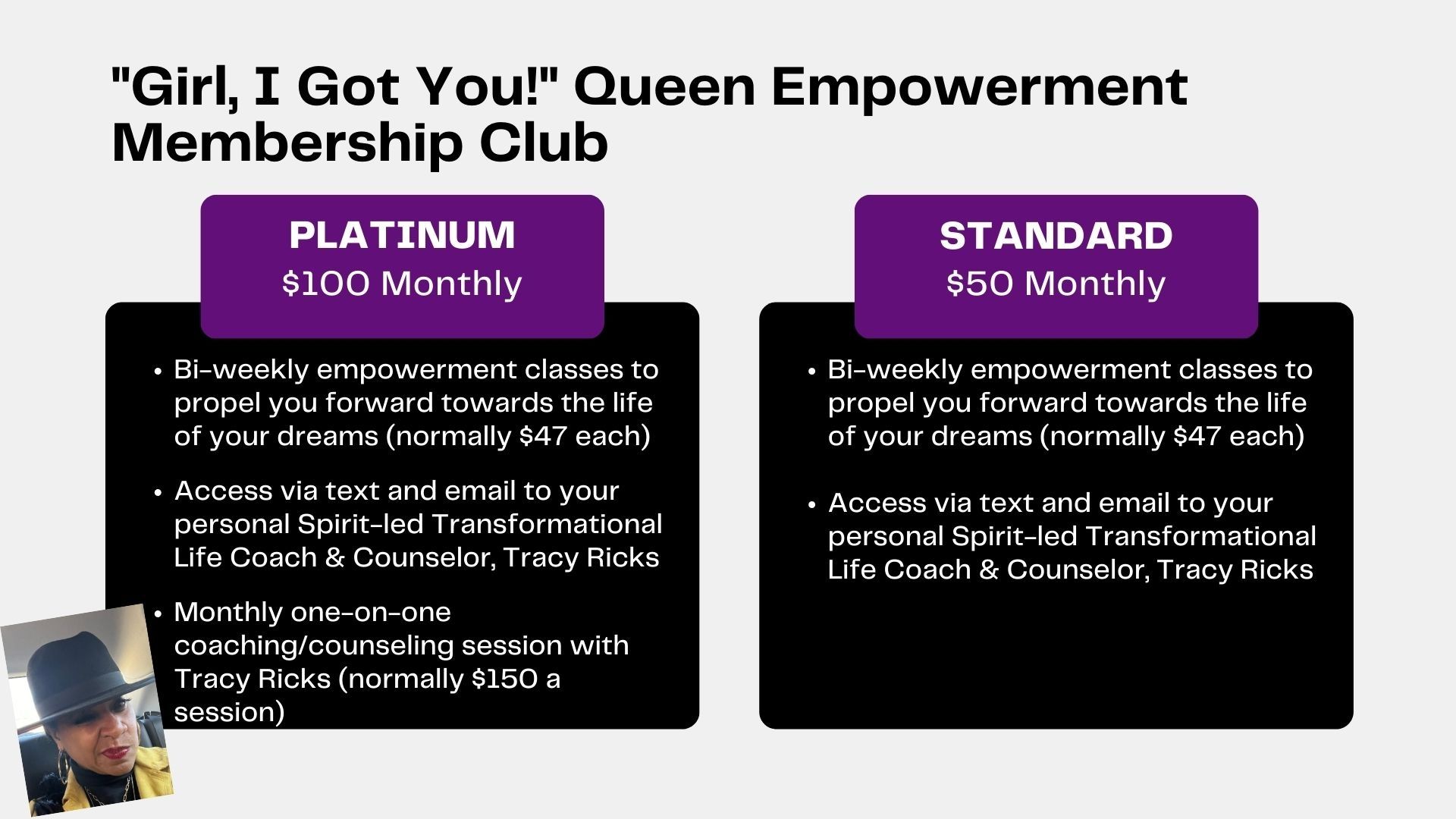 With our "Girl, I Got You!" Queen Empowerment Club, you will: